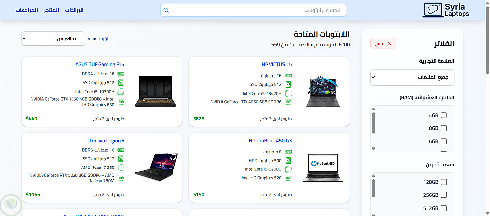 منصة إلكترونية تجمع وتعرض أسعار ومواصفات اللابتوبات المتوفّرة في سوريا من مختلف الماركات (مثل Acer، Lenovo، MSI). تتيح للمستخدمين مقارنة العروض وقراءة مراجعات لأجهزة اللابتوب لاتخاذ قرار شراء مدروس.