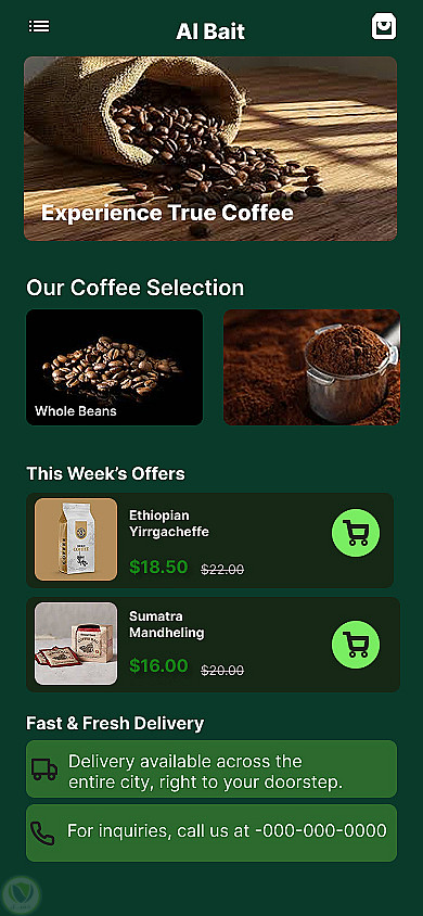 قمت بتصميم واجهة مستخدم لتطبيق محل متخصص في بيع القهوة تحت اسم "ال بيت". طلب العميل استخدام اللونين الأخضر والأسود في التصميم لتعزيز هوية العلامة التجارية وإبراز الطابع الفاخر والهادئ. شمل العمل تصميم شاشات متعددة مثل الصفحة الرئيسية، قائمة المنتجات، تفاصيل المنتج، وعربة الشراء، مع الحرص على تحقيق تجربة مستخدم بسيطة وسلسة. تم تنفيذ التصميم باستخدام Figma مع التركيز على التنظيم البصري وتناسق العناصر بما يتناسب مع ذوق العميل واحتياجات المستخدم النهائي