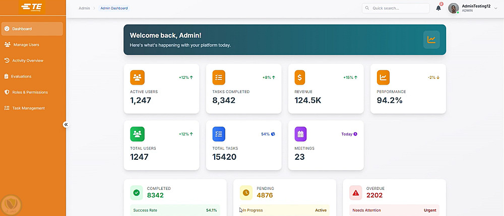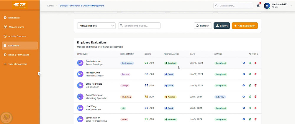 النظام يشمل إدارة الإجازات، الاجتماعات، الإعلانات، إضافة إلى نظام محادثة فورية (Real-Time Chat)، وتسجيل الدخول بالتعرّف على الوجه (Face Recognition Login)، مع لوحات تحكم متقدمة وتقارير مفصلة للموارد البشرية والإدارة.