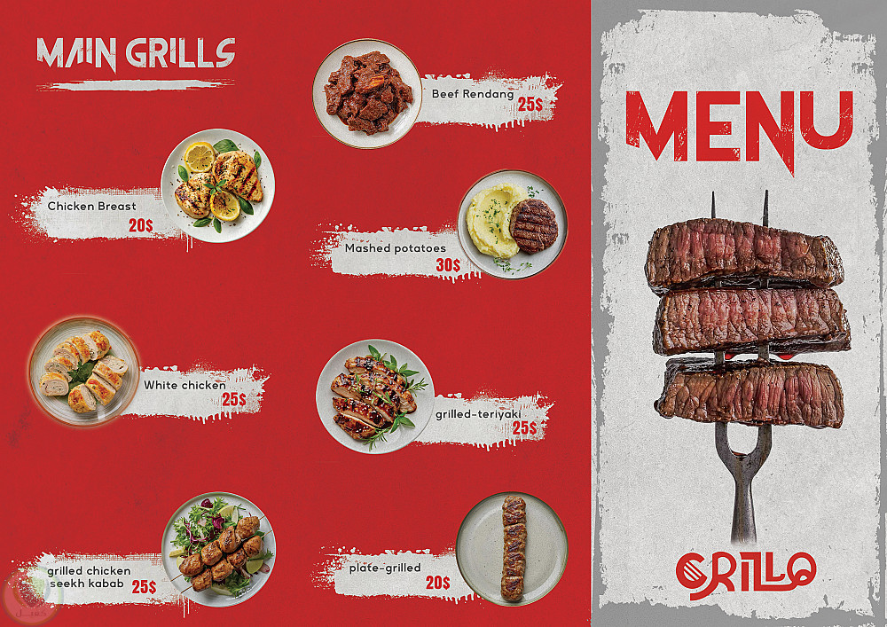منيو احترافي تم تصميمه بأسلوب عصري يناسب هويّة المطاعم، مع اختيار ألوان متناسقة وتنظيم واضح للأقسام علشان يوصل للعميل تجربة قراءة سهلة ومريحة.