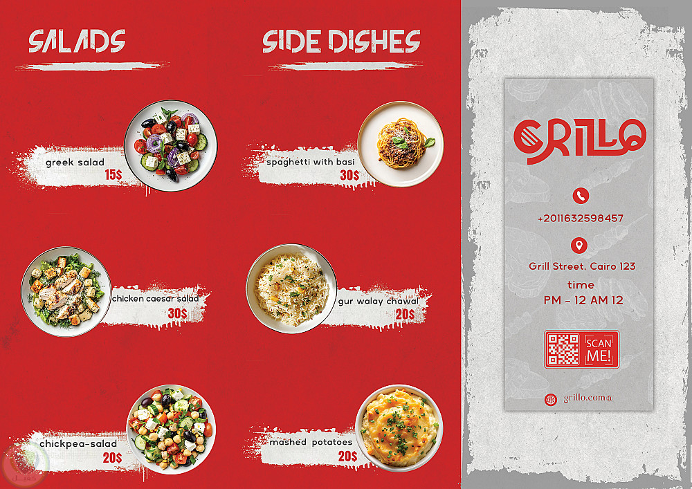 المنيو جاهز للطباعة وبجودة عالية، ومناسب كمان للاستخدام على السوشيال ميديا.