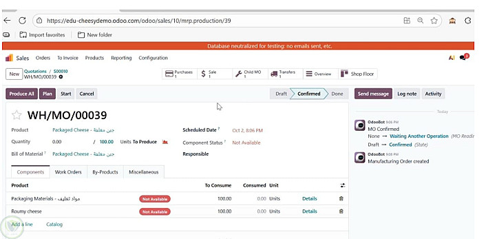 تنفيذ المشروع على Odoo – موديول التصنيع (Cheese Production)