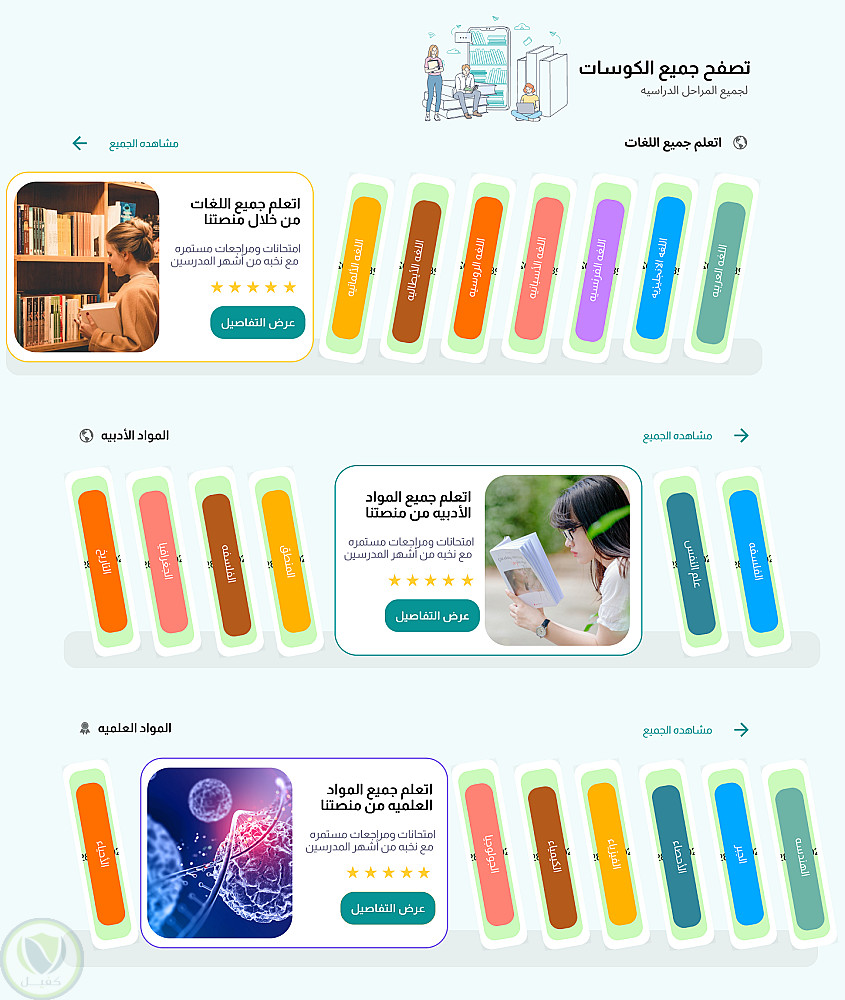اعتمدت أسلوب تصميم حديث بألوان هادئة وتنظيم واضح للمحتوى، مع مراعاة سهولة التنقل والوصول للمعلومات، مما يجعل التجربة مناسبة للطلاب على الويب والموبايل.