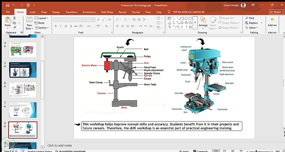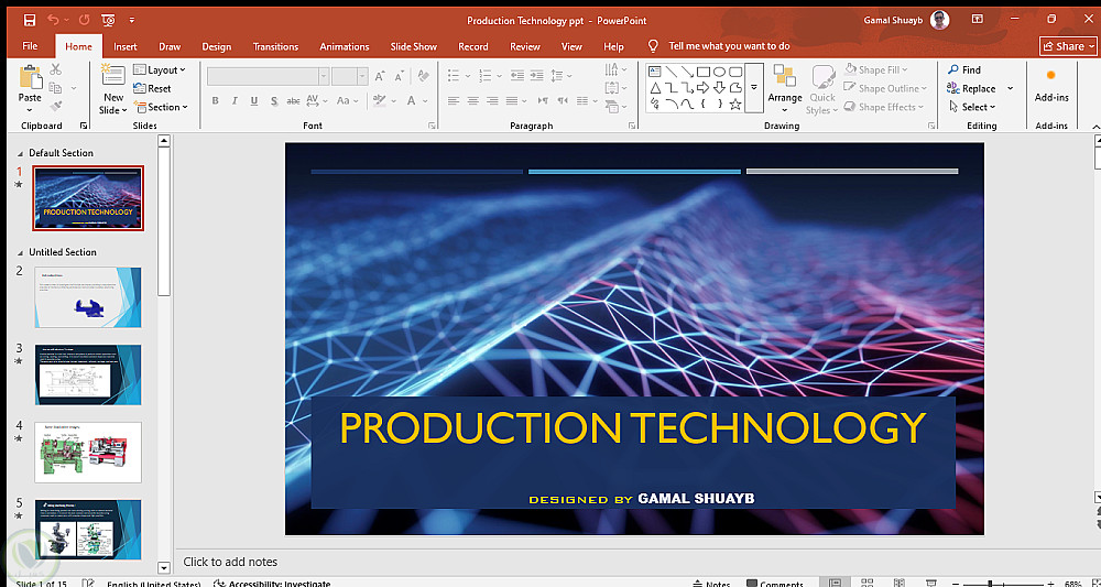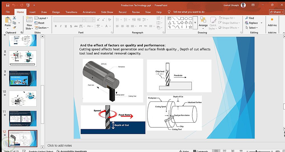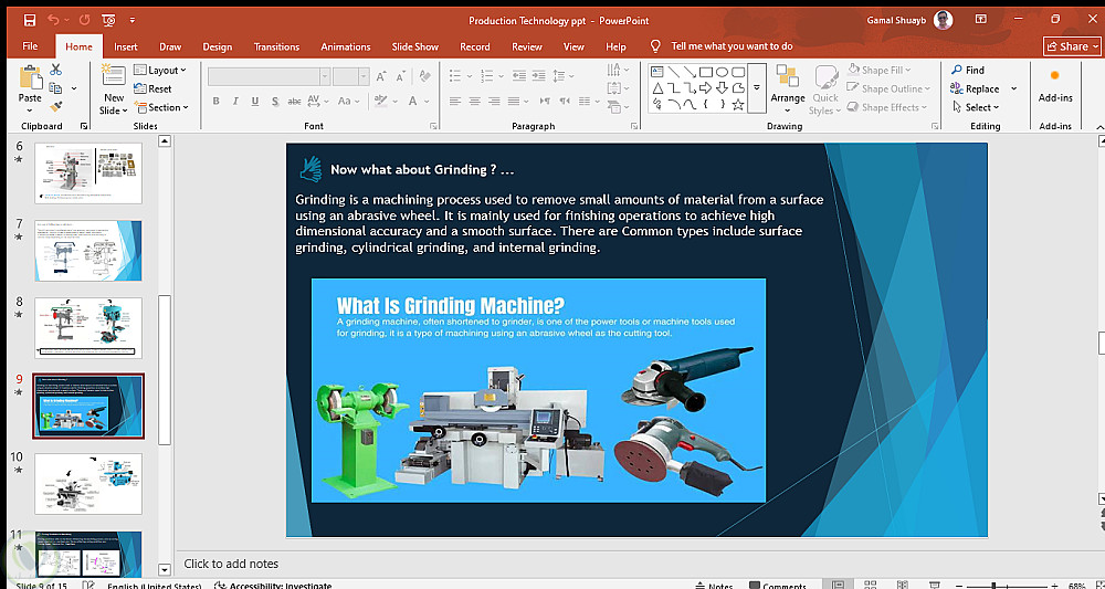 أعددت عرضًا كاملاً يشرح مبادئ تكنولوجيا الإنتاج والتشغيل، ويغطي أهم العمليات الصناعية مثل الخراطة، التفريز، الثقب، والجلخ. يتضمن العرض شرحًا للآلات، وطريقة عمل كل عملية، وتطبيقاتها الصناعية، إضافة إلى تحليل ظروف القطع وعوامل تحسين الجودة والأداء. المحتوى مصمم للطلاب والمهندسين ومحاضرات الكليات الهندسية بأسلوب احترافي مدعوم بالصور والشرح العلمي المبسط.