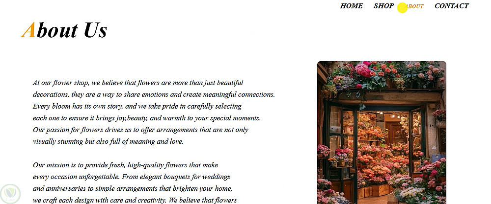 تصميم صفحة هبوط أنيقة ومتكاملة لمتجر ورود بعنوان “Celebrating life with flowers, every day…” باستخدام HTML وCSS بتصميم بسيط وراقي يعبّر عن الجمال والهدوء المرتبط بعالم الزهور.