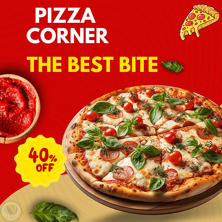 تصميم إعلان سوشيال ميديا احترافي لمطعم بيتزا