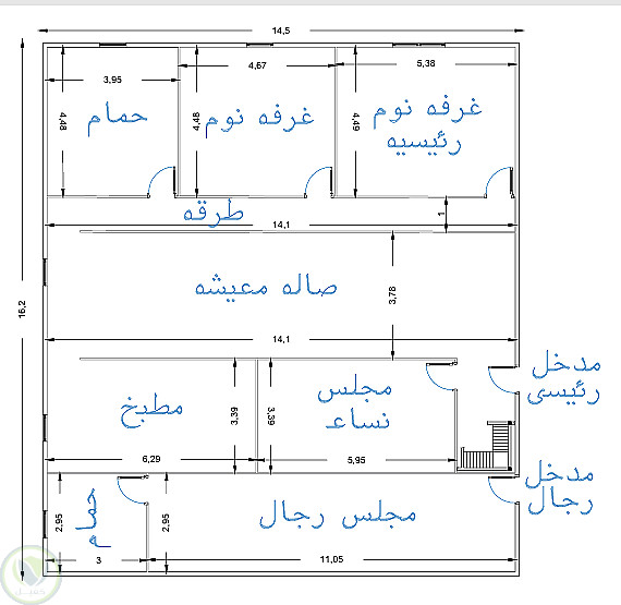 منزل على شارعين به بوابتين احدهما لمجلس الرجال بحمام والاخر للمنزل وبه مجلس نساء