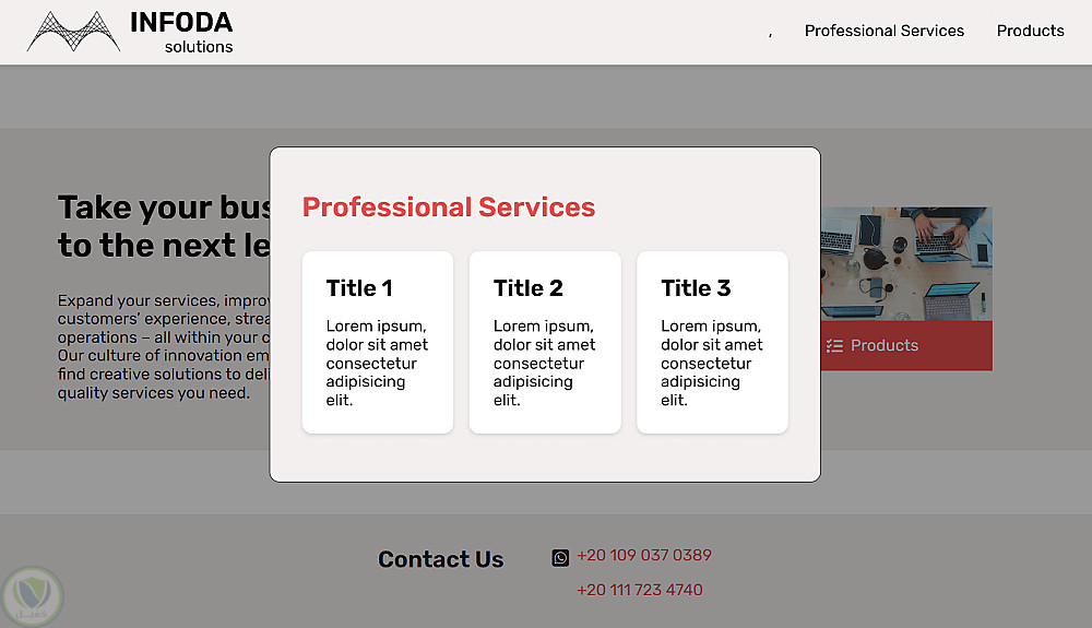 العمل عبارة عن صفحة هبوط بسيطة وتعريفية لشركة، يتم تصميمها وتطويرها باستخدام HTML وCSS وJavaScript فقط، بدون أي أُطر عمل إضافية.
