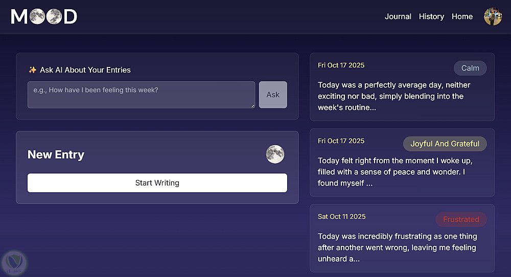 تم استخدام Prisma ORM للتعامل مع قاعدة البيانات بكفاءة وسهولة، حيث يربط التطبيق بين المستخدمين ومدخلاتهم وتحليلاتهم المزاجية.