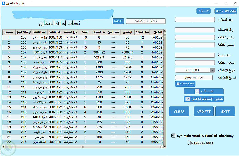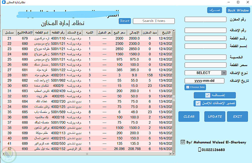عمل برنامج لتسجيل وبيع وجرد قطع الغيار الخاصه بالمخازن وربطها بقاعدة بيانات mysql.