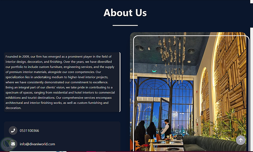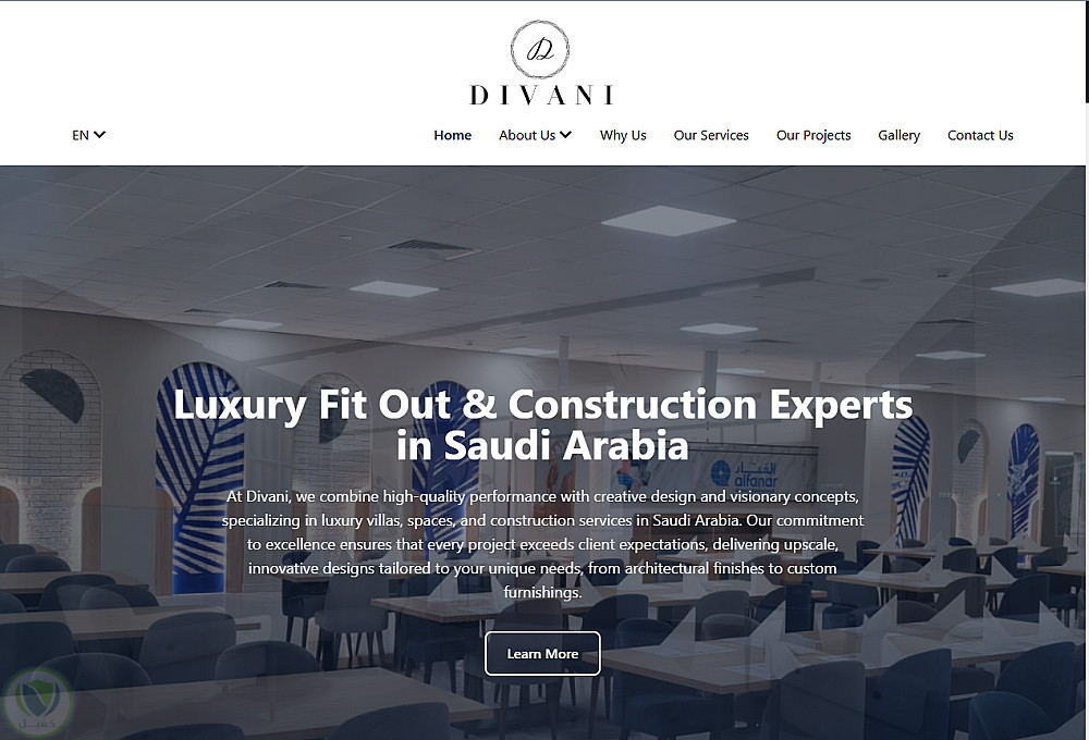 موقع تعريفي لشركة Divaniworld شركة مقاولات وتشطيب داخلي "سعودية"