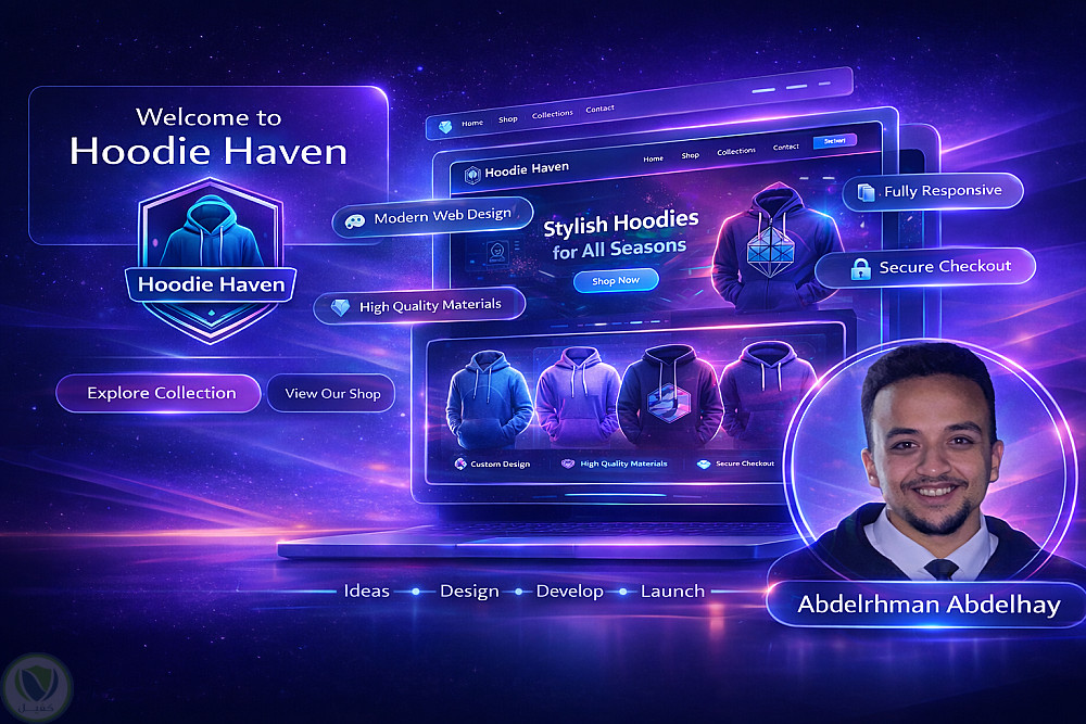 تطوير منصة احترافي لمتجر إلكتروني Hoodie-Haven مع لوحة إدارة وإشعارات لحظية