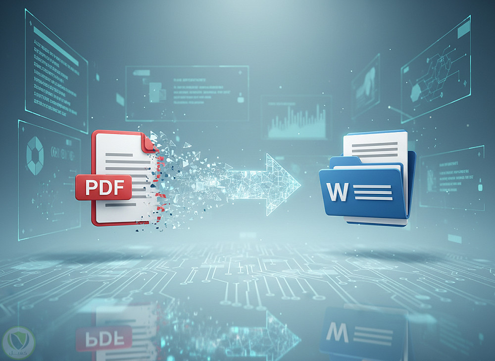 تصميم صورة بالذكاء الإصطناعي لخدمة تحويل ملفات PDF إلي ملفات Word.