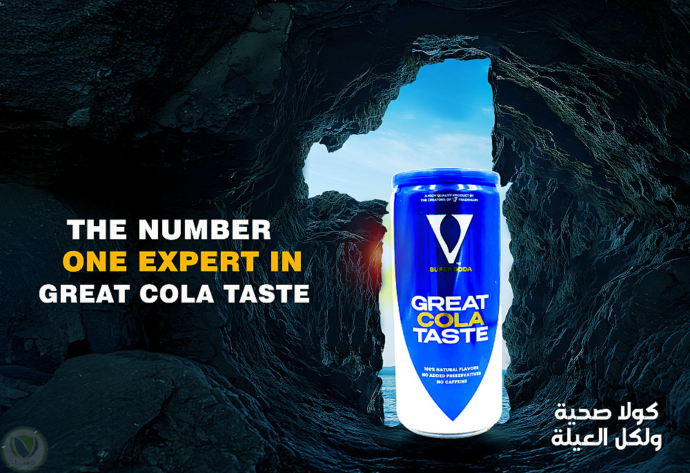 تصميم إعلاني جريء لمشروب كولا داخل مشهد طبيعي مدهش، حيث تظهر العبوة وسط تكوين صخري مع فتحة على شكل رقم "1" تطل على سماء زرقاء ساطعة، في إشارة رمزية لكون المنتج "الأول في الطعم". الإضاءة والبيئة تعكس طابعًا منعشًا ومميزًا، بينما النص الإنجليزي والعربي يبرز جودة الطعم وخلو المنتج من الكحول. العبارة "كوال صحة ولكل العيلة" تضيف بُعدًا عائليًا وصحيًا للعلامة التجارية. الإعلان مثالي لحملات المشروبات الغازية التي تستهدف جمهورًا واسعًا من مختلف الأعمار.