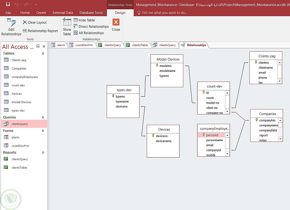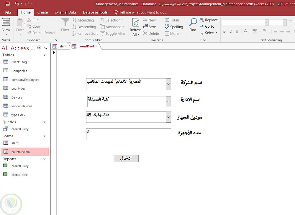 تم تصميم تطبيق ويندوز ، إنشاء قاعدة بيانات باستخدام ميكروسوفت اكسيس لشركات الصيانة المتعاقدة مع الجامعة وربطها بلغة الفيجوال بيسك المدمجة ، تصميم واجهات للنماذج ، استخراج التقارير المطبوعة