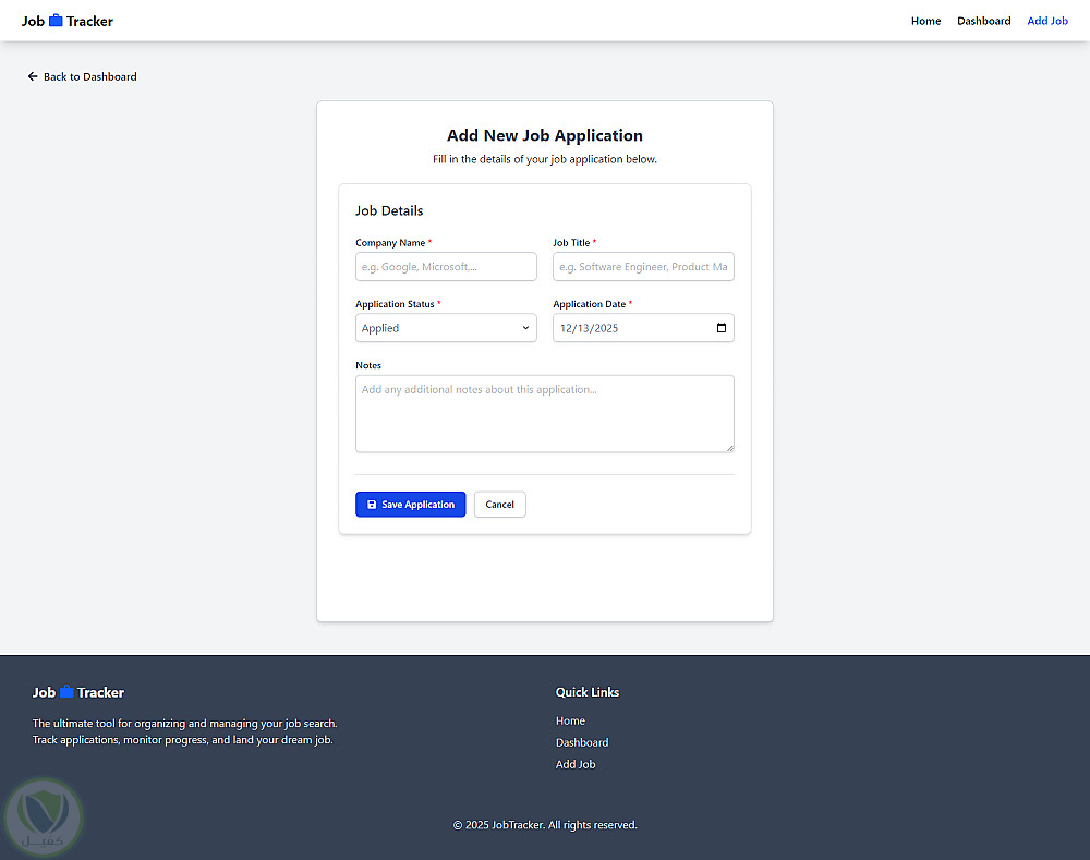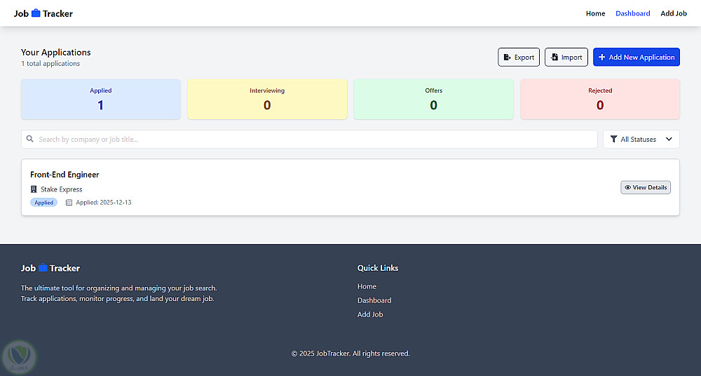 تطبيق ويب يسمح للمستخدمين بتتبع طلبات التوظيف الخاصة بهم وإدارتها.