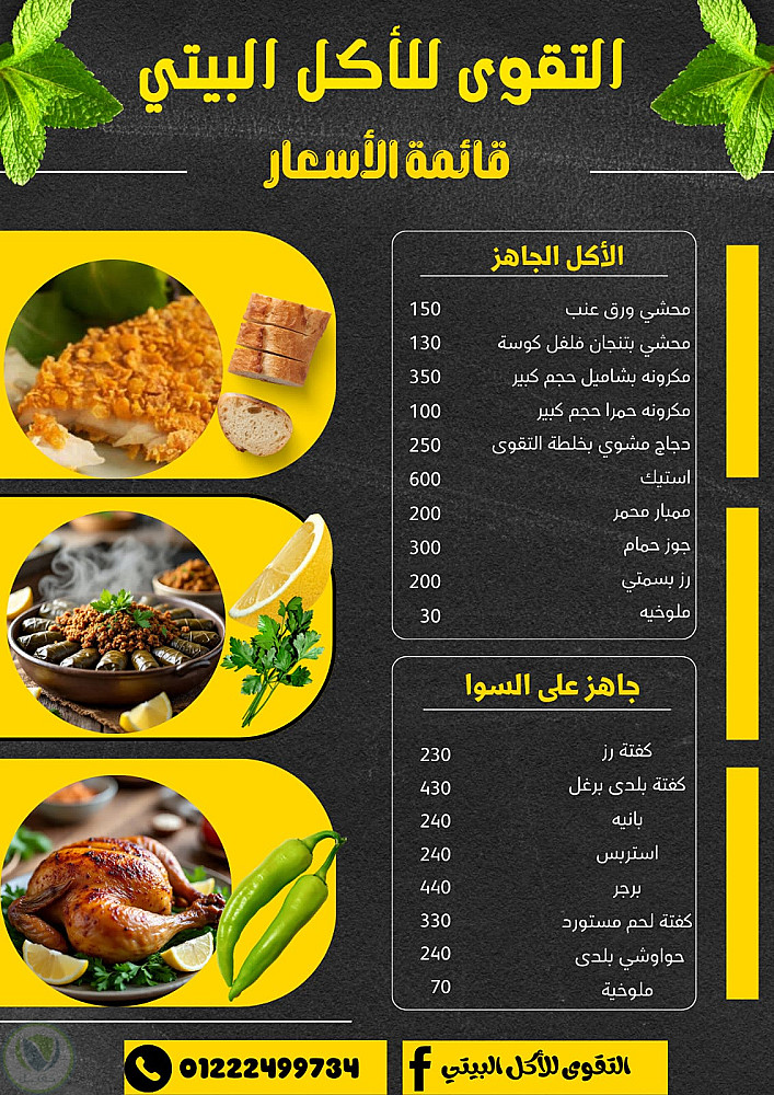 تصميم قائمة مطبخ ونشرة إعلانية تم تنفيذهم بأسلوب بسيط وواضح لعرض المنتجات والخدمات بطريقة جذابة وسهلة القراءة.