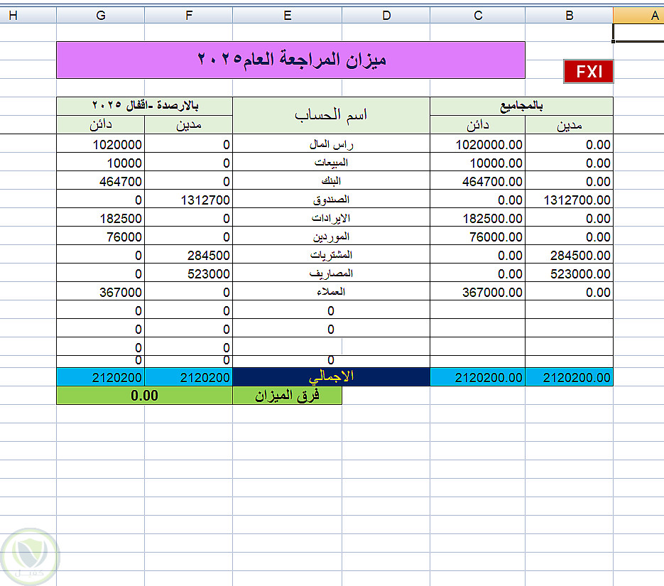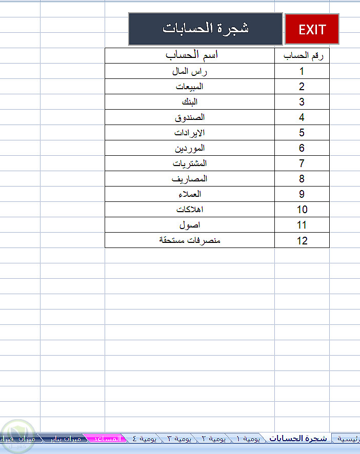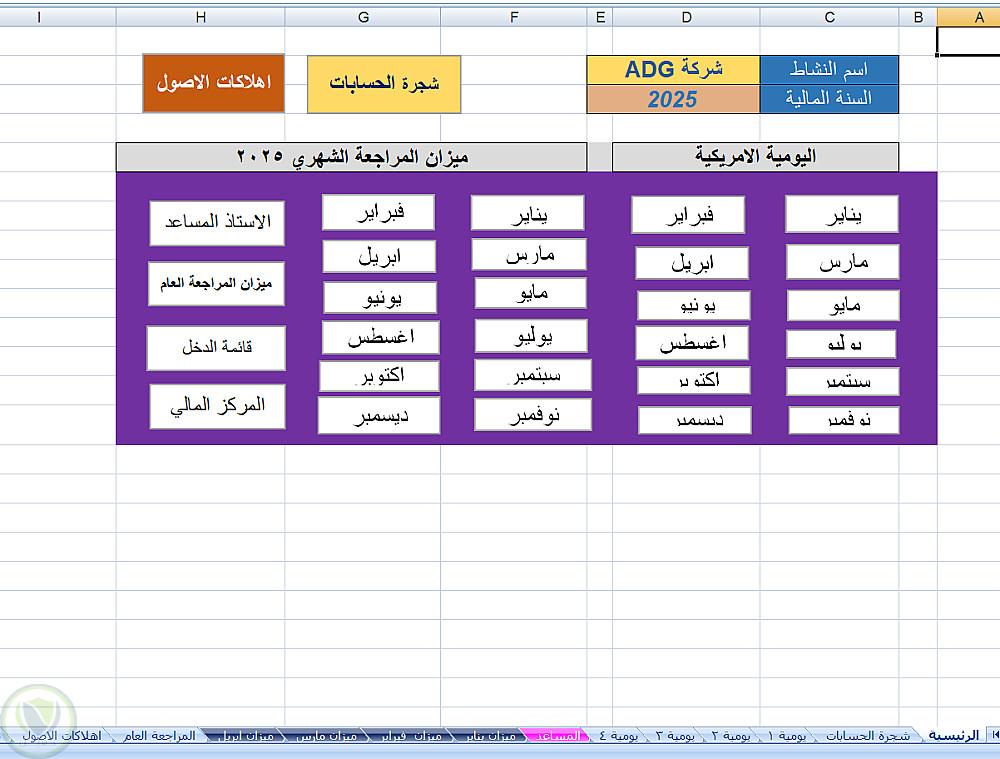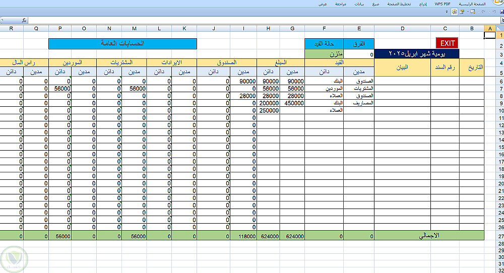 قيود دفتر اليومية الامريكية علي اكسيل . ودفتر الاستاذ العام والمركز المالي وميزان المراجعة
