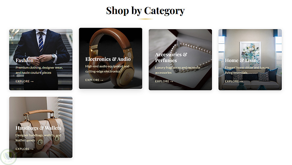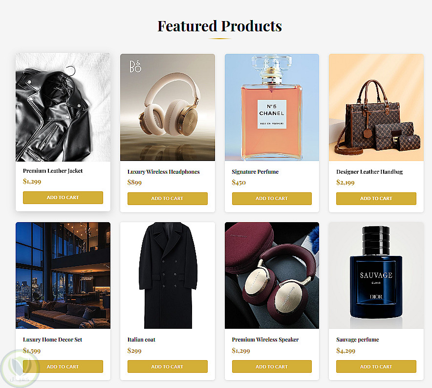 - واجهة متعددة الصفحات بتصميم Premium (Home – Categories – About – Contact – Cart).