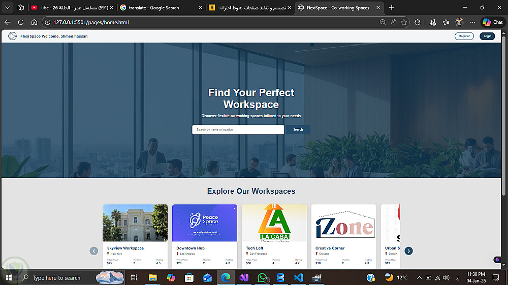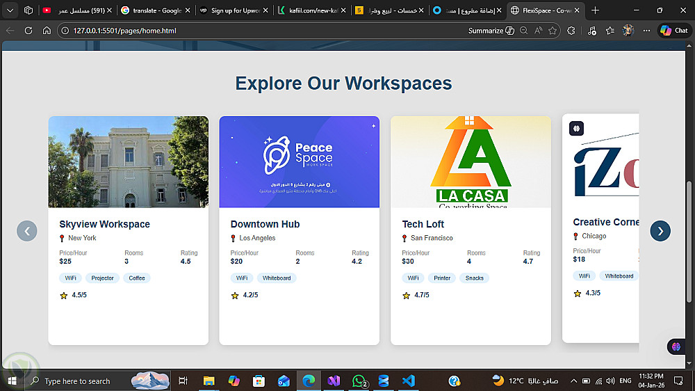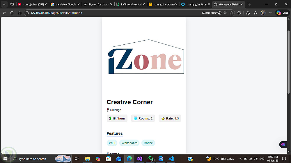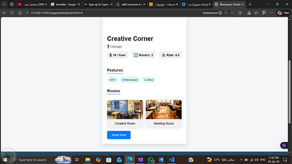 صفحات تعرض مختلف الورش الخاصة في محافظة و يمكن الحجز عليها و رؤية التفاصيل المختلفة بكل واحدة