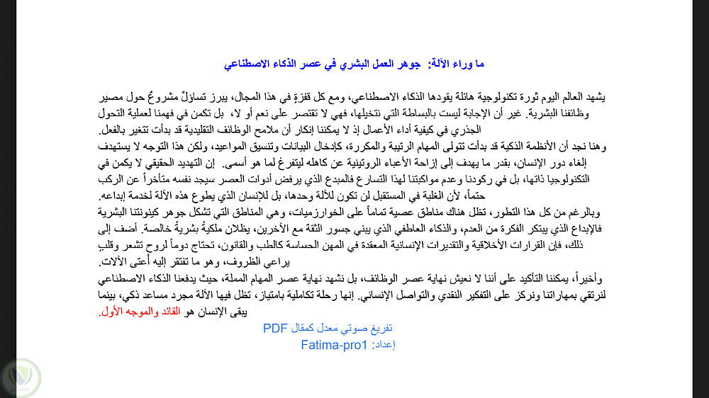 تفريغ وتحرير مقال تقني: "جوهر العمل البشري في عصر الذكاء الاصطناعي"