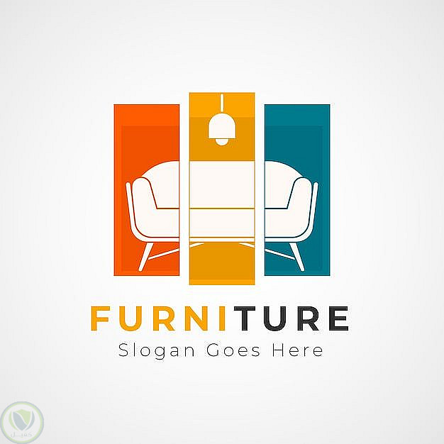 تصميم شعار عصري لمتجر أثاث، يدمج بين البساطة والإبداع من خلال تقسيم أيقونة "الأريكة" لثلاثة أجزاء لونية تعكس التنوع والحداثة.