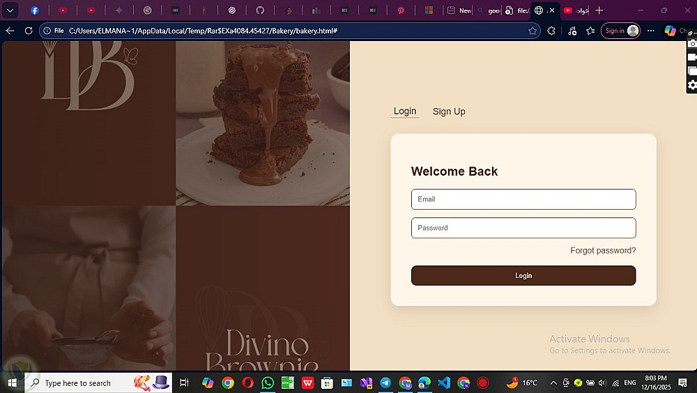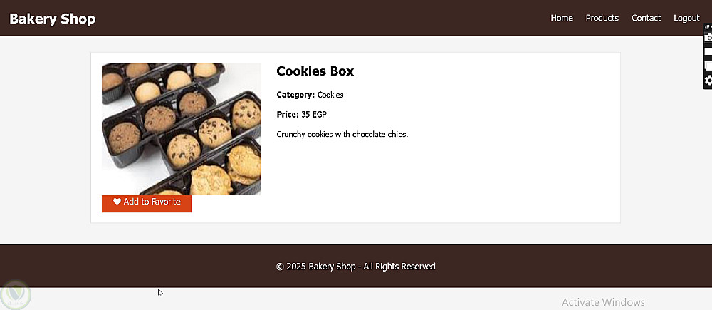 تطبيق Front-End خاص بمخبز (Bakery Application) يهدف إلى عرض منتجات المخبوزات بطريقة جذابة وسهلة الاستخدام، مع تجربة مستخدم بسيطة وسلسة.