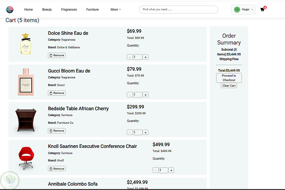 نظام سلة مشتريات (Cart) مع إمكانية إضافة وحذف المنتجات
