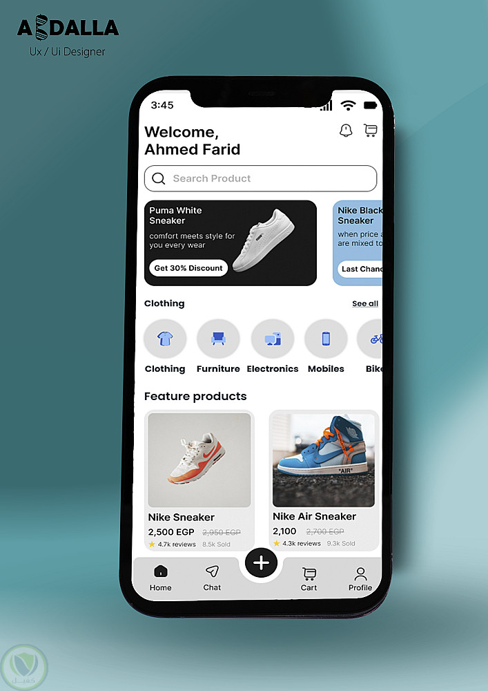 تصميم واجهة مستخدم باستخدام figma لتطبيق متجر أونلاين تخيلي، تم دراسة وتحديد المقاسات، الألوان، والعناصر المناسبة للتصميم، حتى يكون سهل وواضح وقابل للاستخدام بسهول، وكفائة عالية.