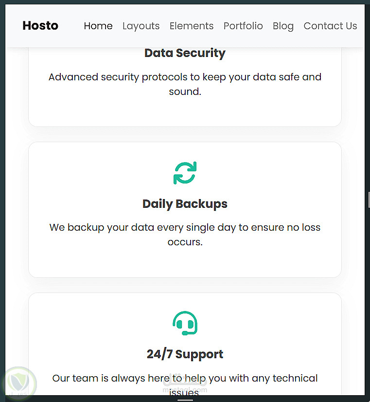 هوية بصرية قوية: استخدام متناسق للألوان والخطوط (Google Fonts) بما يتناسب مع شركات الاستضافة.