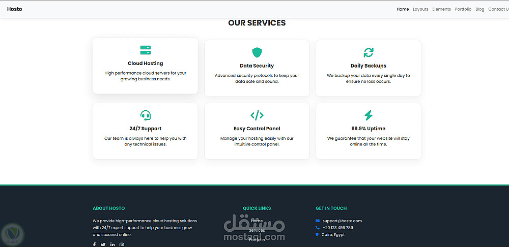 تصميم واجهة موقع استضافة سحابية (Landing Page) عصرية ومتجاوبة