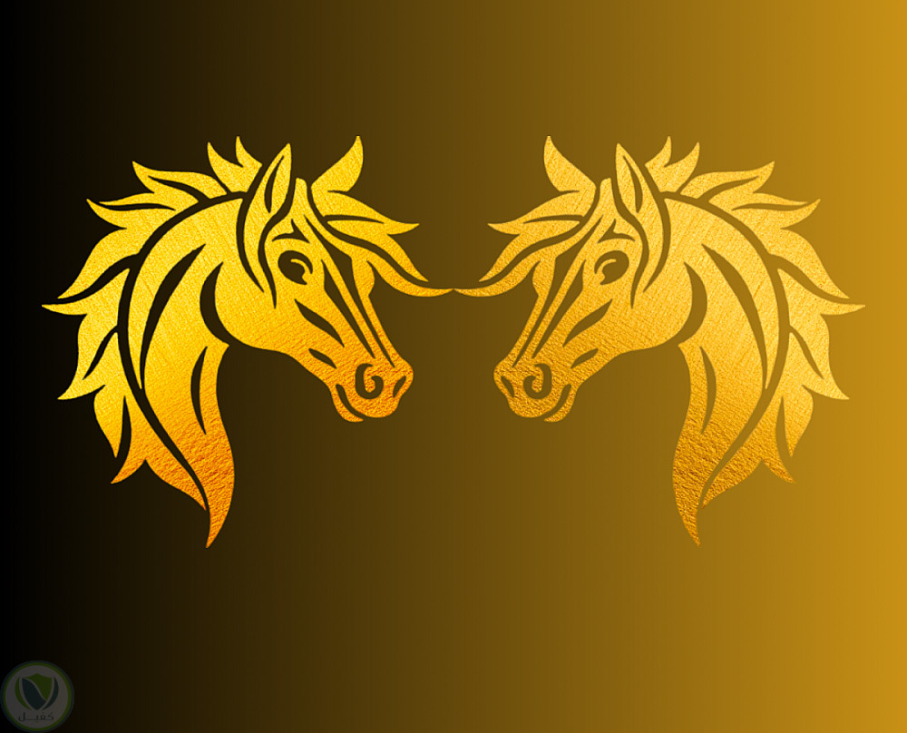 تصميم رأس حصان على خلفية ذهبية