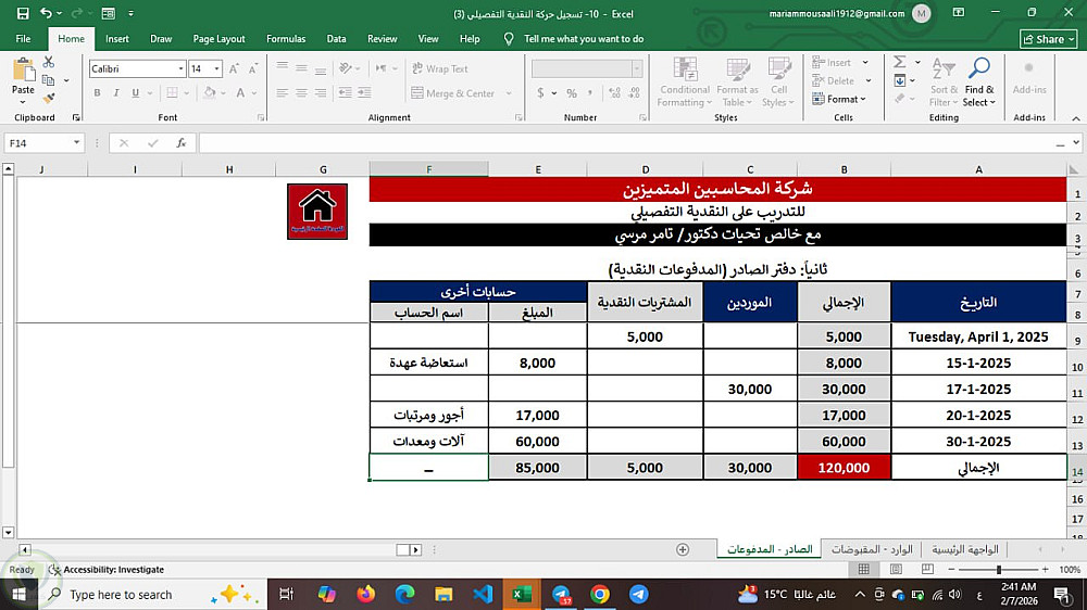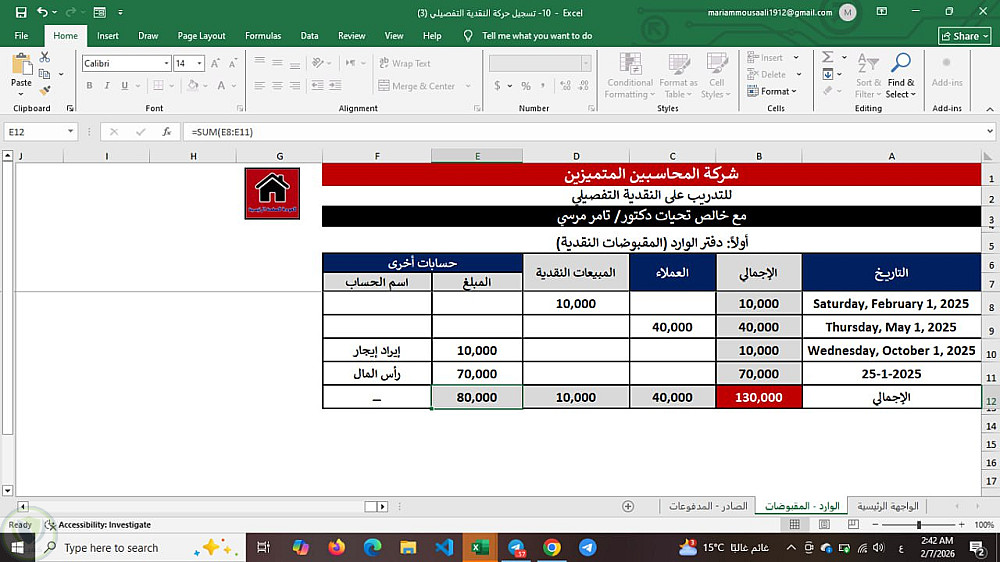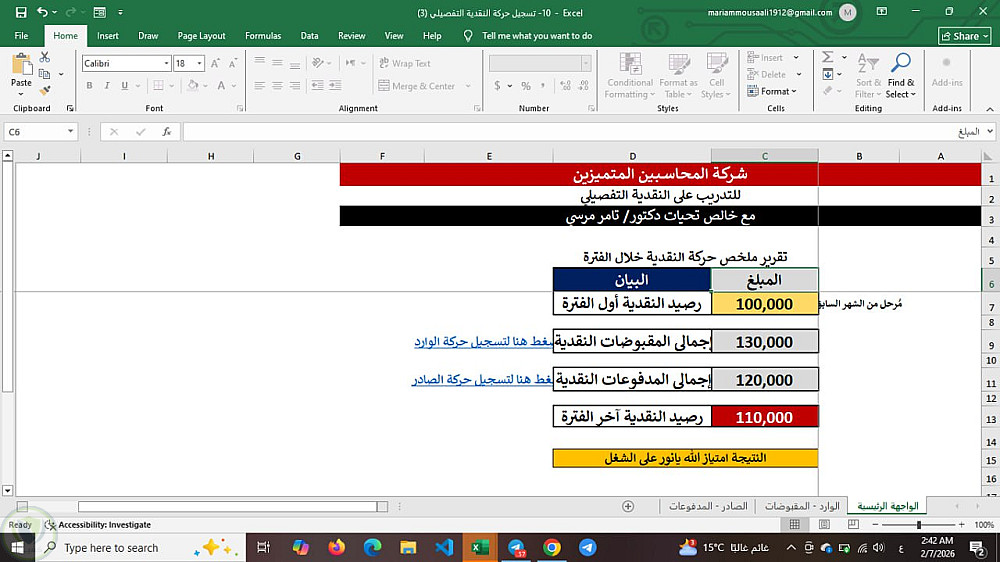 تصميم نموذج احترافي لمتابعة حركة النقدية (Cash Flow Summary)