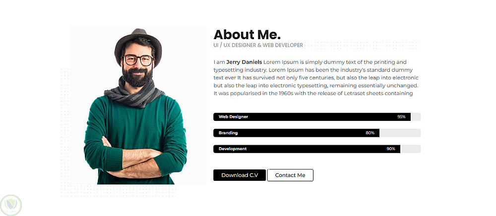 قسم تعريفي (About) مع عرض المهارات باستخدام Progress Bars