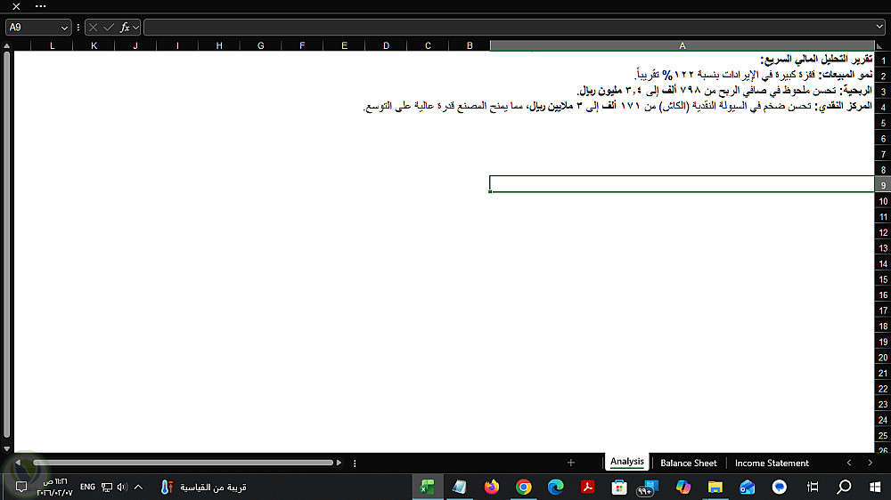 - تقرير الملخص التنفيذي: استخلاص أهم النتائج (مثل نمو الإيرادات بنسبة 122%، وتحسن السيولة النقدية) في تقرير مبسط.