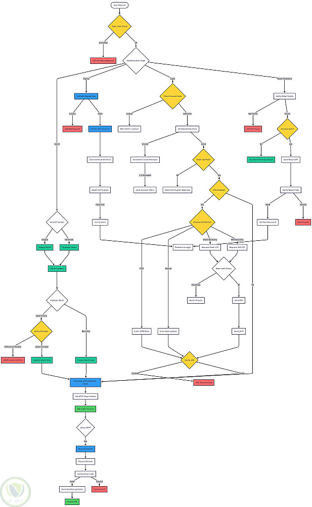 يعتمد على JWT مع Refresh Token Rotation وSecure HTTP-only Cookies لإدارة جلسات آمنة.