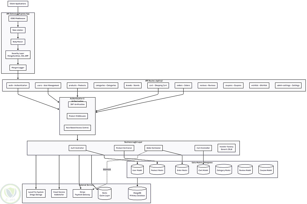 منصة Backend متكاملة للتجارة الإلكترونية مبنية باستخدام Node.js وExpress وMongoDB، توفّر مجموعة شاملة من RESTful APIs لإدارة جميع عمليات المتجر من تسجيل المستخدمين حتى الدفع وتتبع الطلبات.