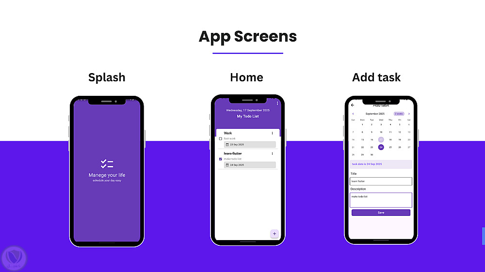 طبيق موبايل لإدارة وتنظيم المهام اليومية تم تطويره باستخدام Flutter بواجهة بسيطة وسهلة الاستخدام تساعد المستخدم على إضافة المهام، تعديلها، حذفها، وتحديد المهام المكتملة بكل سلاسة.