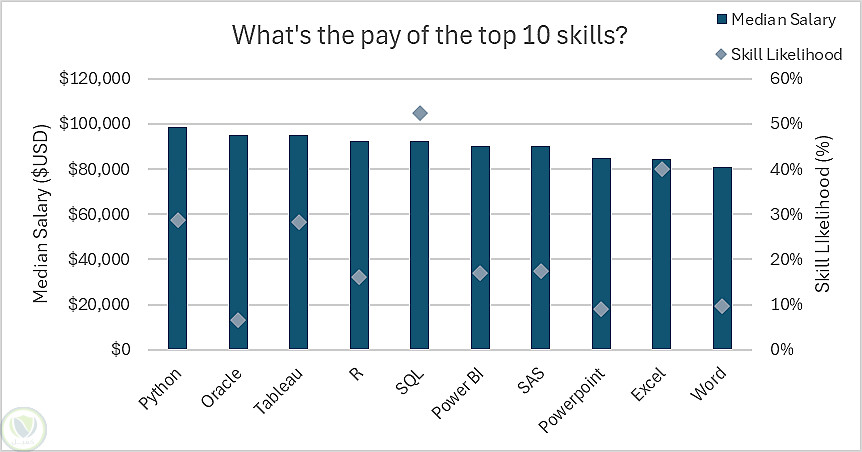 Pivot Charts: تصميم مخططات بيانية مزدوجة لربط قيمة المهارة بنسبة طلبها.