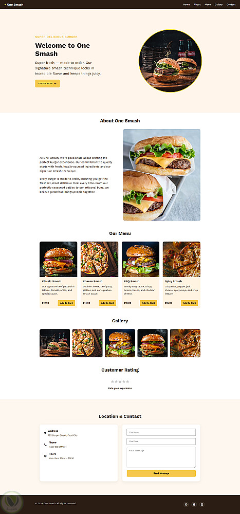 تصميم وتطوير موقع ويب لعرض مطعم وبرجر منيو بشكل جذاب وعصري، مع تنظيم واضح للأقسام وتجربة مستخدم سهلة. الموقع متوافق مع جميع الشاشات ويبرز المنيو، الصور، والتواصل مع العملاء بشكل احترافي.