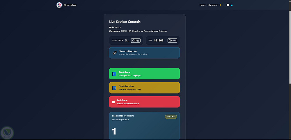 الامتحانات تعمل بالوقت الحقيقي (Real-Time) بإستخدام Socket.IO، بحيث يبدأ و ينتهي الامتحان من قِبل المعلم فقط و لا يستطيع الطالب أن يدخل الامتحان قبل أو بعد انتهائه.