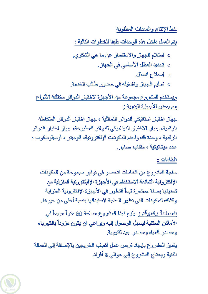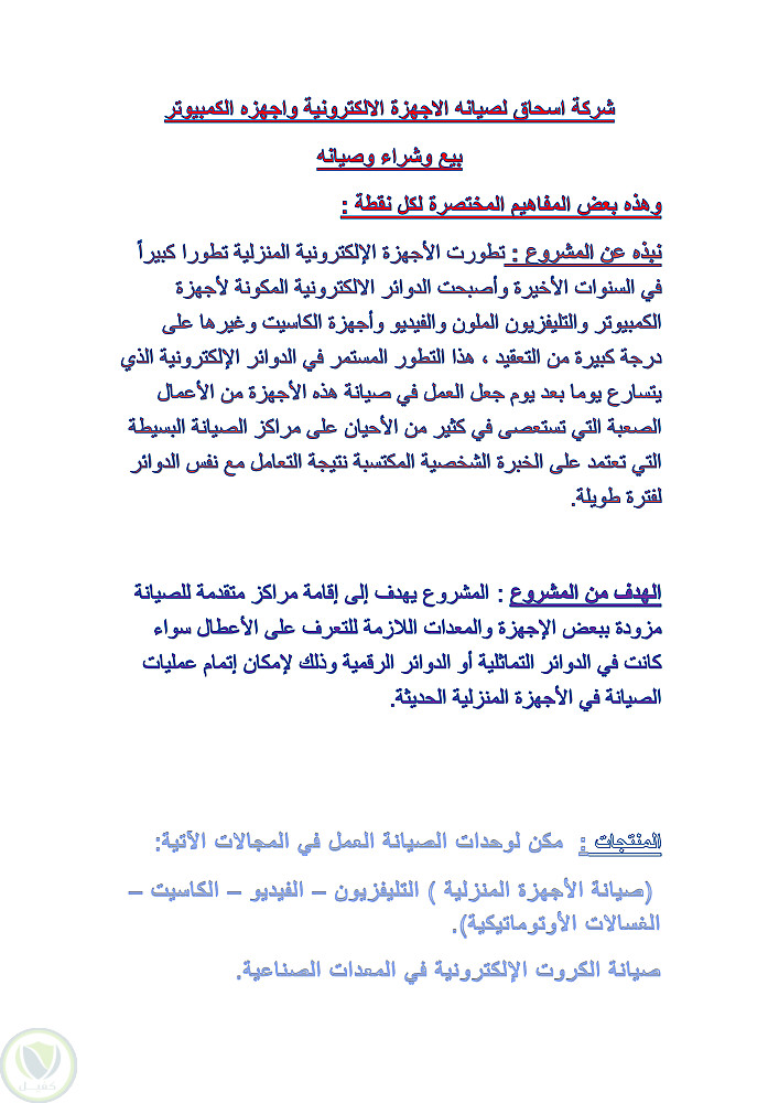 دراسة جدوى تصمية بسيطة لشرحة اجهزة الكترونية وصيانة