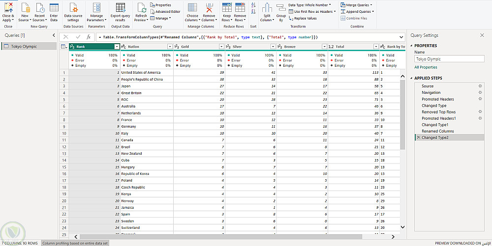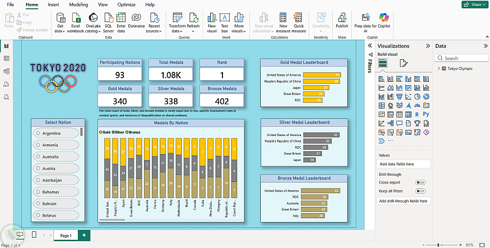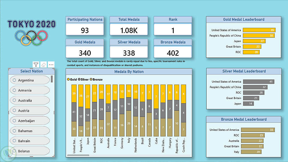 تحليل بيانات وميداليات أولمبياد طوكيو 2020 باستخدام Power BI