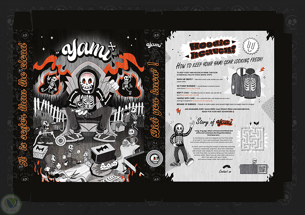 عملت على تصميم هوية بصرية وإلستريشن لبراند ملابس شبابية باسم “Yami”، يعتمد على تصميم Hoodies مستوحاة من الكرتون القديم بأسلوب Retro ممتع. ركزت في المشروع على خلق شخصية واضحة للبراند وتقديم تصاميم جذابة جاهزة للطباعة، تعكس هوية فريدة وتناسب الفئة المستهدفة من الشباب.