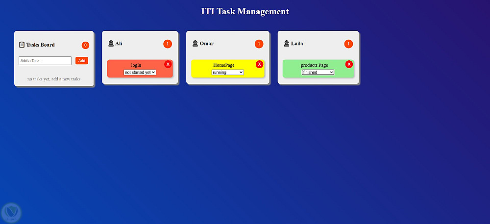 مشروع "ITI Task Management" هو عبارة عن لوحة تحكم (Dashboard) تفاعلية مصممة لتنظيم وتوزيع المهام بين أعضاء الفريق بفاعلية وسهولة. يهدف النظام إلى تحسين الإنتاجية من خلال تتبع حالة كل مهمة ومراقبة أداء الفريق بشكل مرئي مباشر.