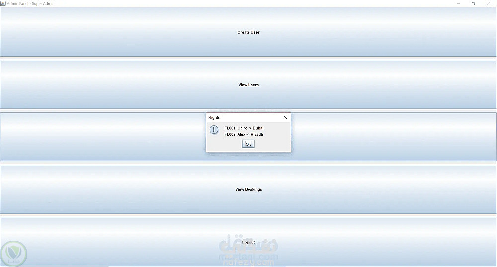Customer: يستطيع حجز رحلة، إلغاء حجز، رؤية رحلاته
