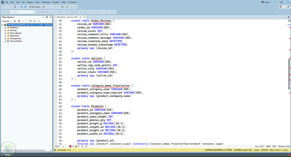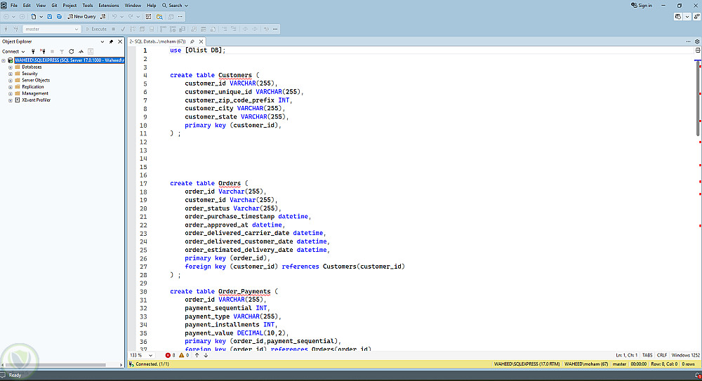 بناء قاعدة بيانات Olist عبر SQL مع تحميل البيانات