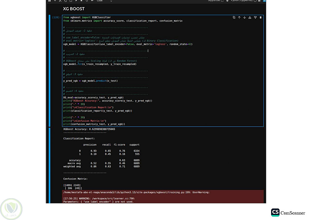 الأدوات المستخدمة: Python, Scikit-Learn, Pandas, NumPy, XGBoost, Seaborn.
