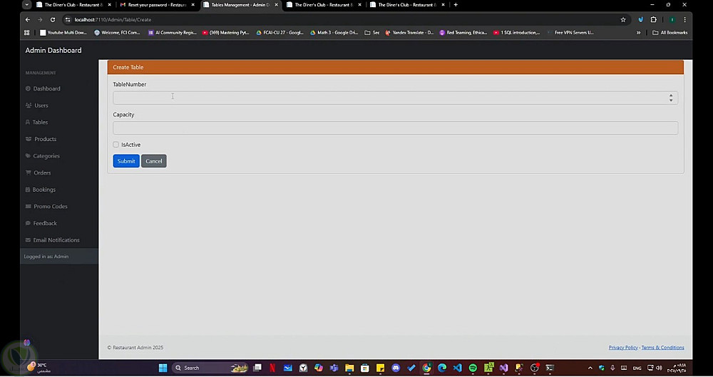 إدارة حجوزات الطاولات (Table Reservations)