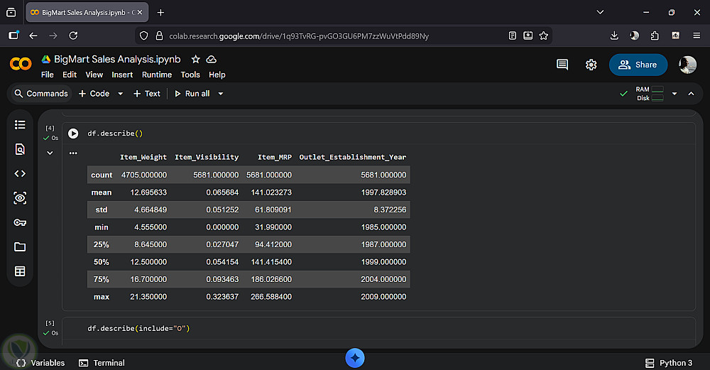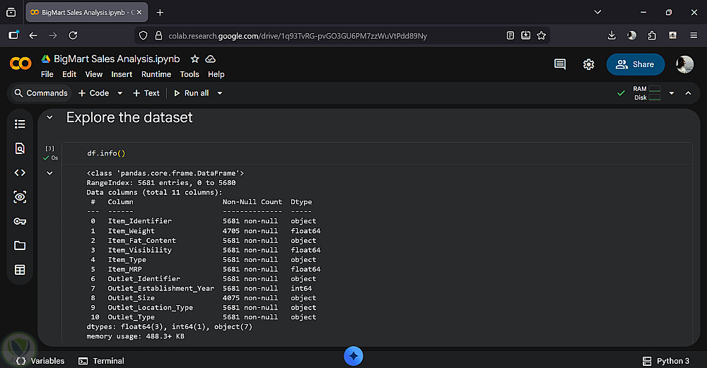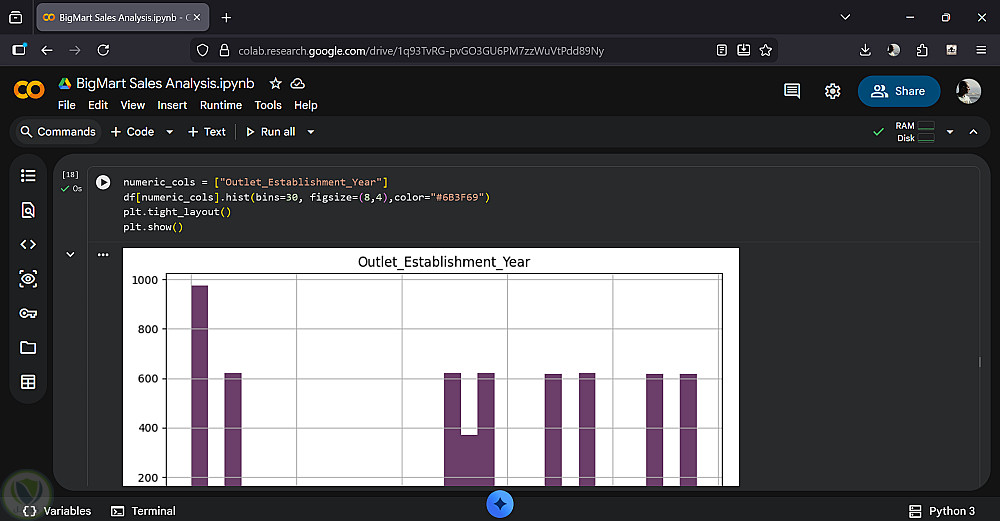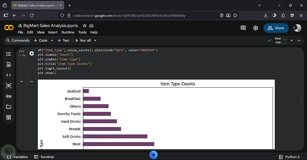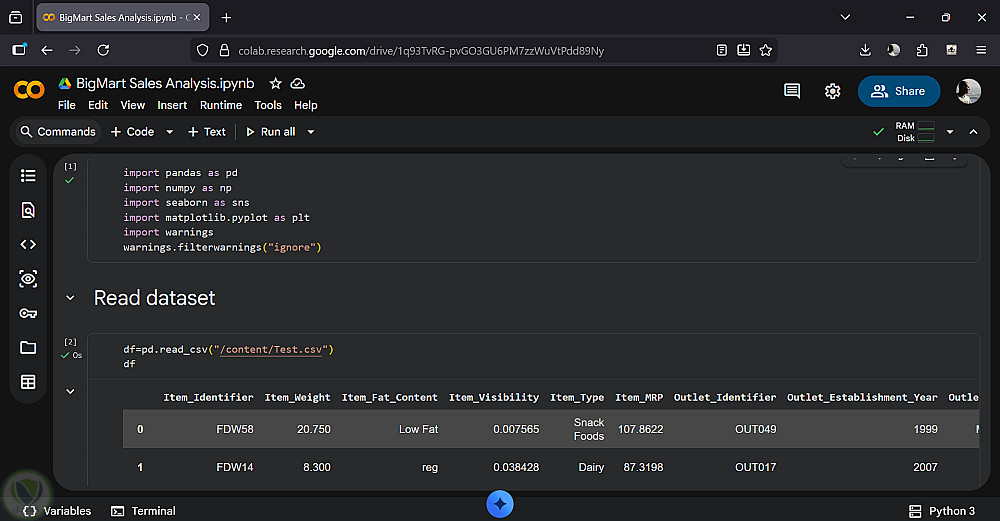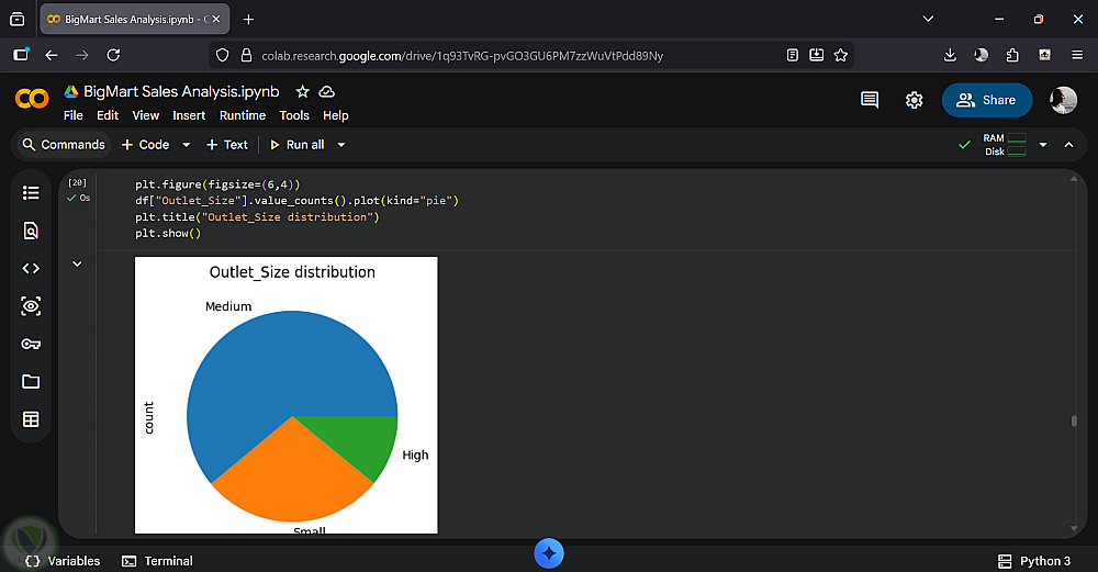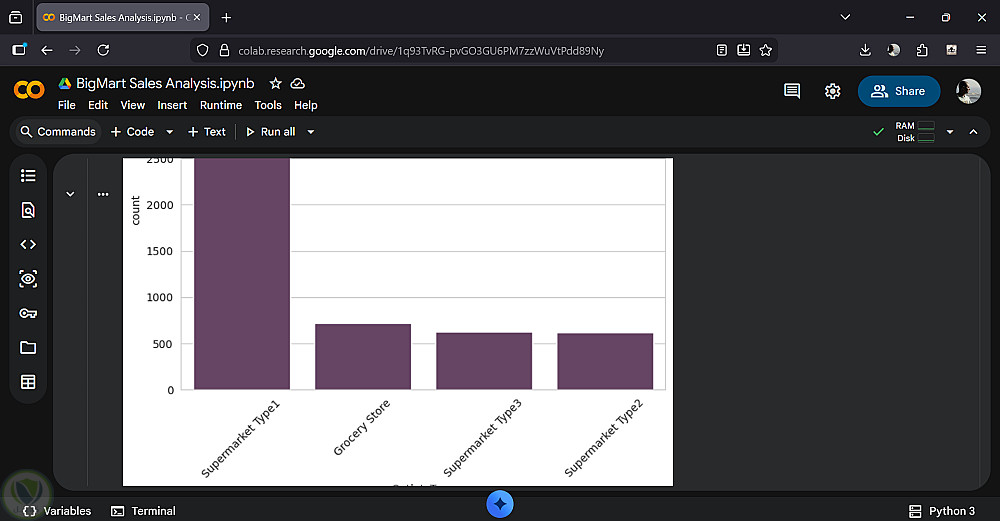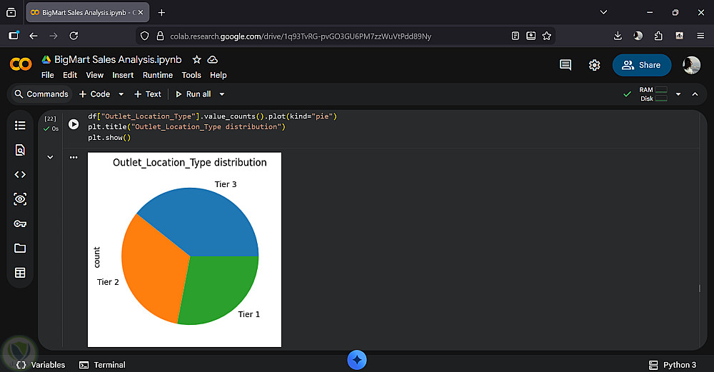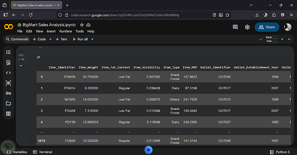 قمت بتنفيذ مشروع متكامل لتحليل بيانات مبيعات تضم 1559 منتجًا عبر 10 متاجر في مدن مختلفة، بهدف بناء نموذج تنبؤي لتوقع مبيعات كل منتج داخل كل متجر بدقة عالية.